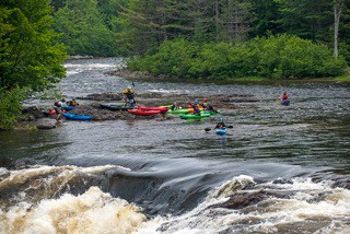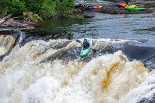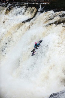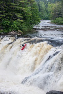 - Kayak going over the falls, Maine Huts & Trails. Photo Courtesy John Orcutt