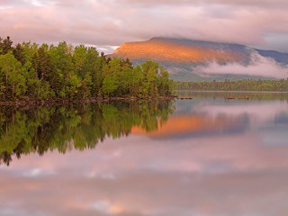 - First light on Bigelow range, Maine Huts & Trails. Photo Courtesy John Orcutt