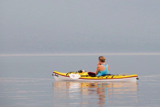 - Kayaker in Falls, Maine Huts & Trails. Photo Courtesy John Orcutt