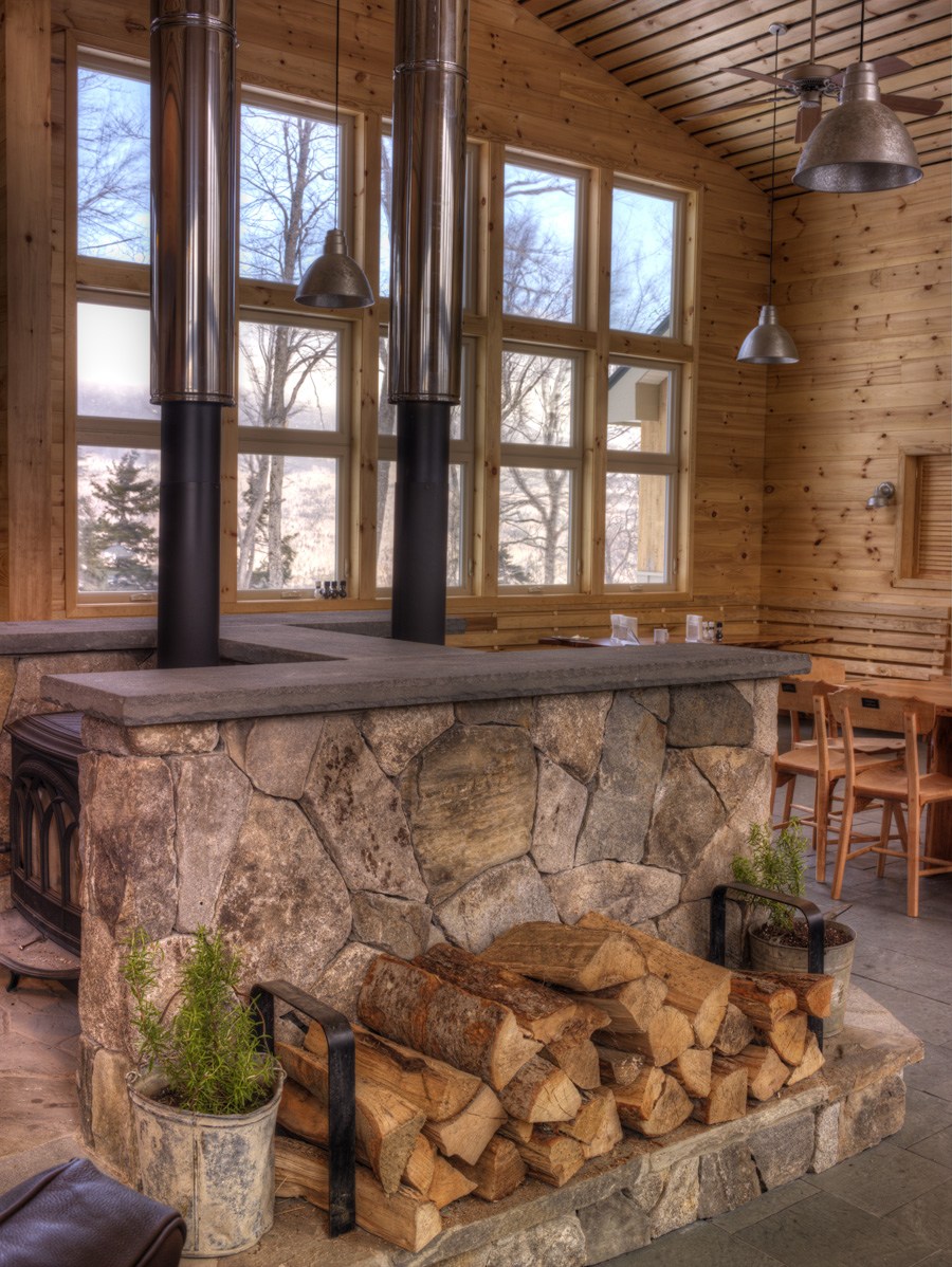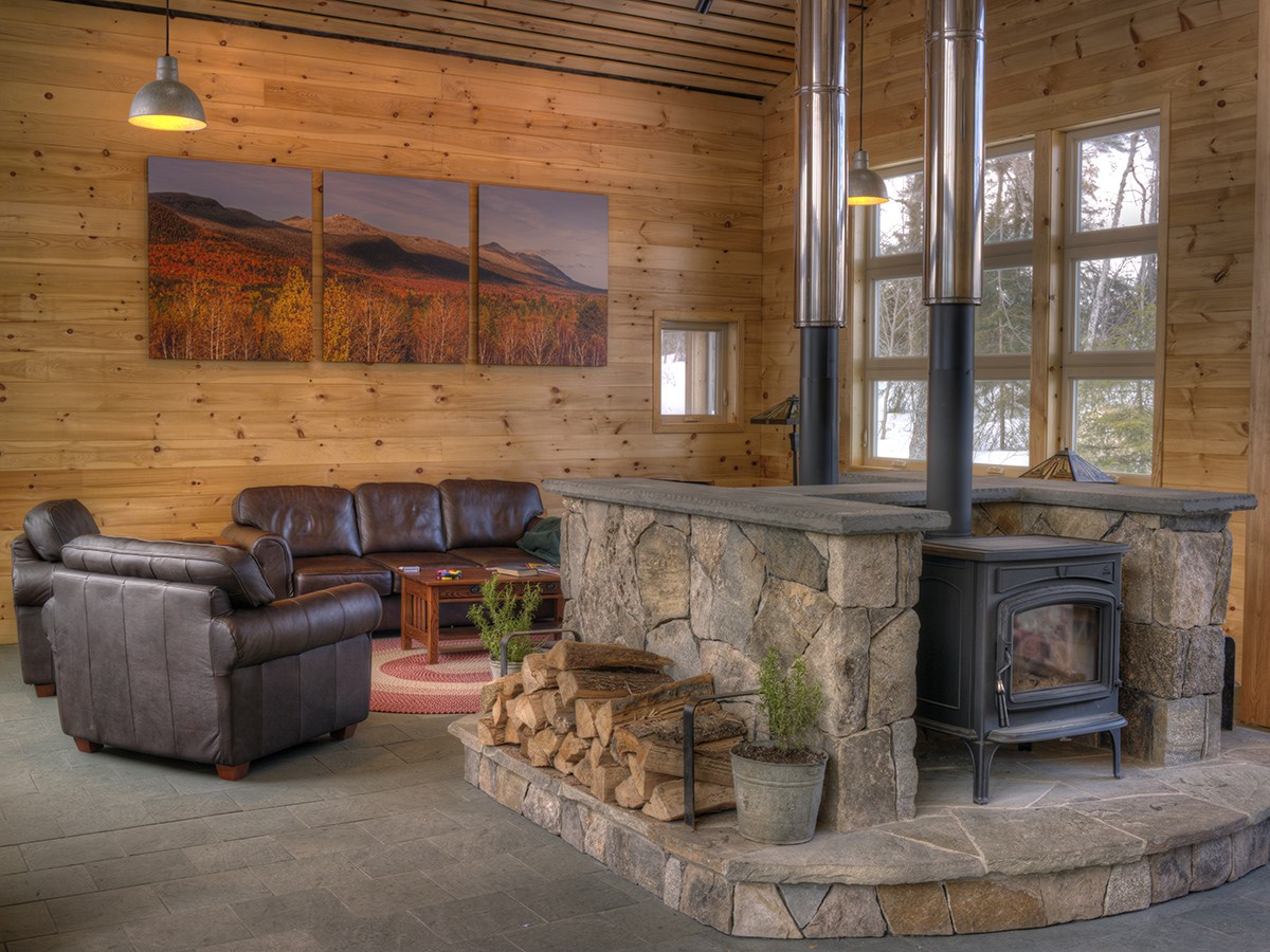 - Stratton Brook Wood Stoves and Dining Room, Maine Huts & Trails. Photo Courtesy John Orcutt