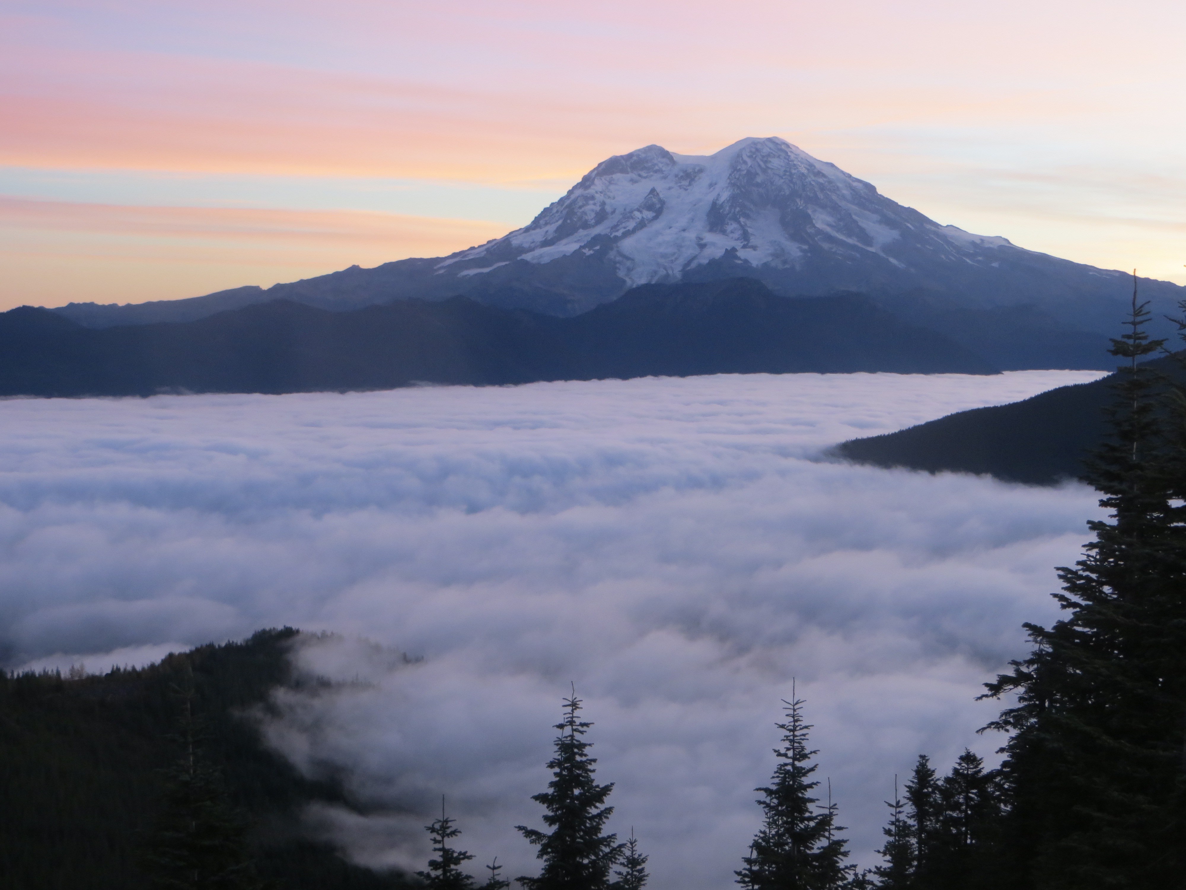 - Mt Rainier, viewed from High Hut, photo courtesy Leyton Jump