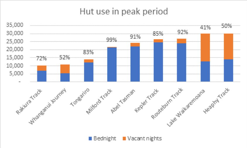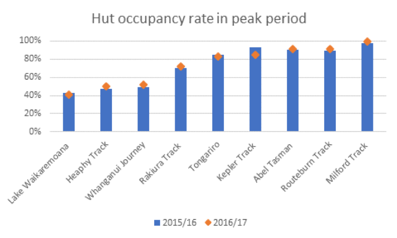 DoC has tinkered over the years with pricing solutions in relation to over-crowding. In 2017 DoC raised Great Walks hut fees modestly. Price increases ranged from 0% to 30%, depending on the level of demand and season. During peak season the highest use Great Walks (Milford, Kepler and Routeburn) increased by 19-30%, while lesser used walks (e.g. Tongariro, Heaphy and Rakiura) increased by 6-13%. I have seen no discussion of the lessons learned from this fee increase.