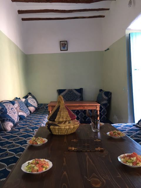 Each day, as we approach a village, small children gather to greet up with loud “bonjours!” And requests for “stylos” – pens or pencils – which are apparently more popular tokens of exchange than candy. At Jamal’s request, we had brought a stash of pencils and writing pads as gifts for children of our nightly hosts. Berbers have a splendid tradition of hospitality, sheltering travelers for up to three days. Although we were paying guests, the hosts – usually a younger man – served us and then often joined us to partake of tea during lunch and evening meals. A daughter – usually in the early teenage years – usually also attended to our needs.