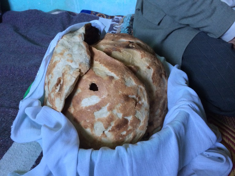 We bedded down in sleeping bags provided by Jamal, with extra warmth pulled from blanket stacks that are a regular feature in these village homes.